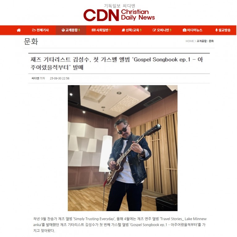 [기사] 재즈 기타리스트 김성수, 첫 가스펠 앨범 ‘Gospel Songbook ep.1 – 아주어렸을적부터’ 발매(기독일보 씨디엔)